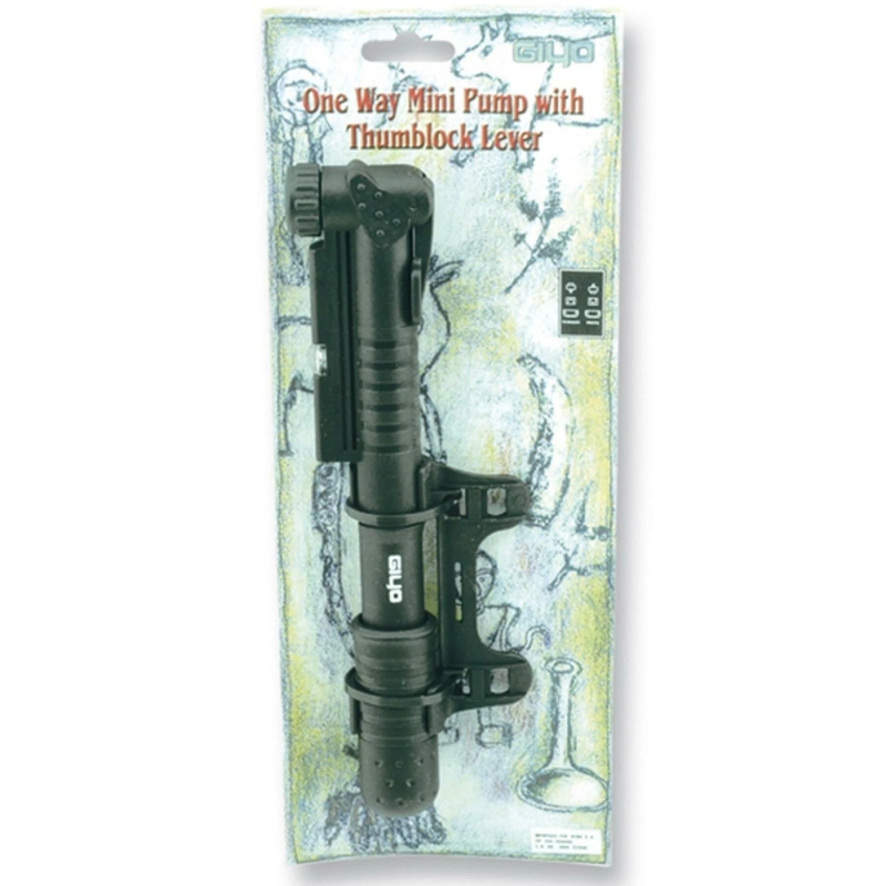 Mini-pompe GIYO (GP41) Pression max : 100psi (7bar).Avec manomètre.Tête de gonflage réversible Presta et Schrader Support du porte-bidon.