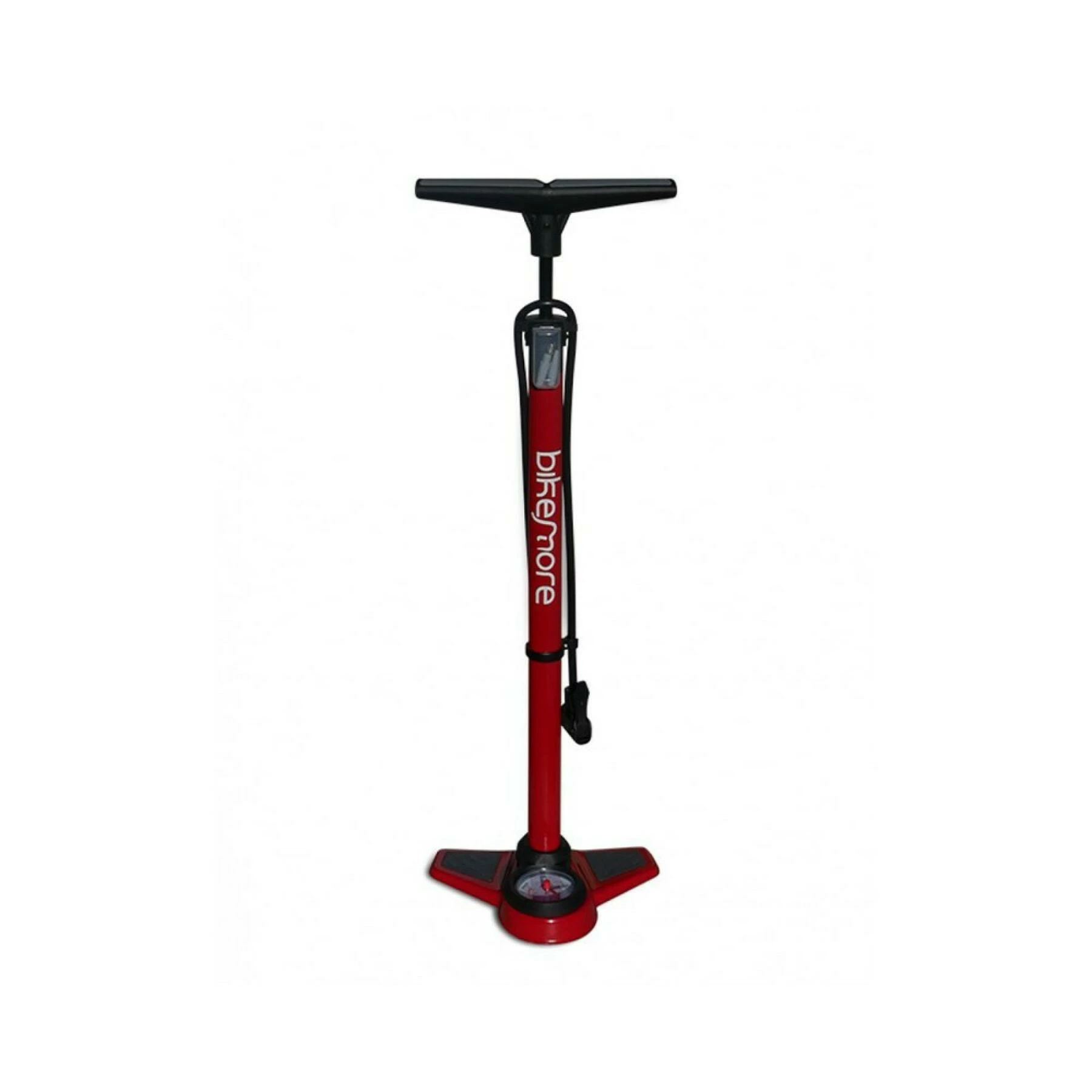 Pompe à pied Bikemore équipée d’un manomètre intégré allant jusqu’à 12 bars et 200 psi. Idéal pour un gonflage rapide et efficace.