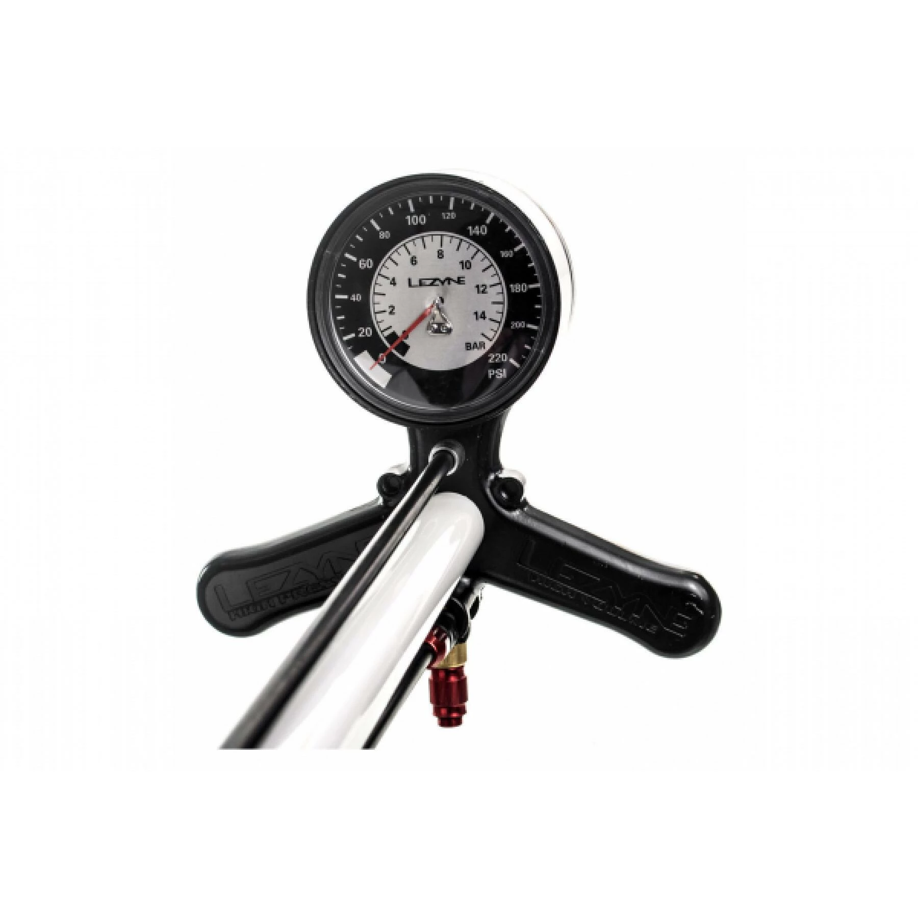 Base en aluminium usiné durable avec un cylindre et un piston en acier. Jauge de précision surdimensionnée de 3,5 pouces. Tuyau extra long à haute résistance avec coupleurs en aluminium. Finition peinture haut de gamme avec manche en bois verni. ABS1 Pro équipé.